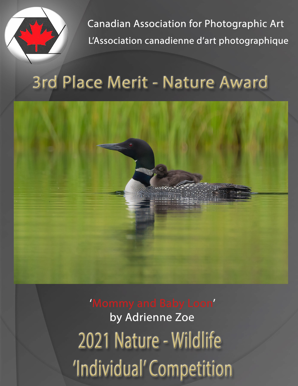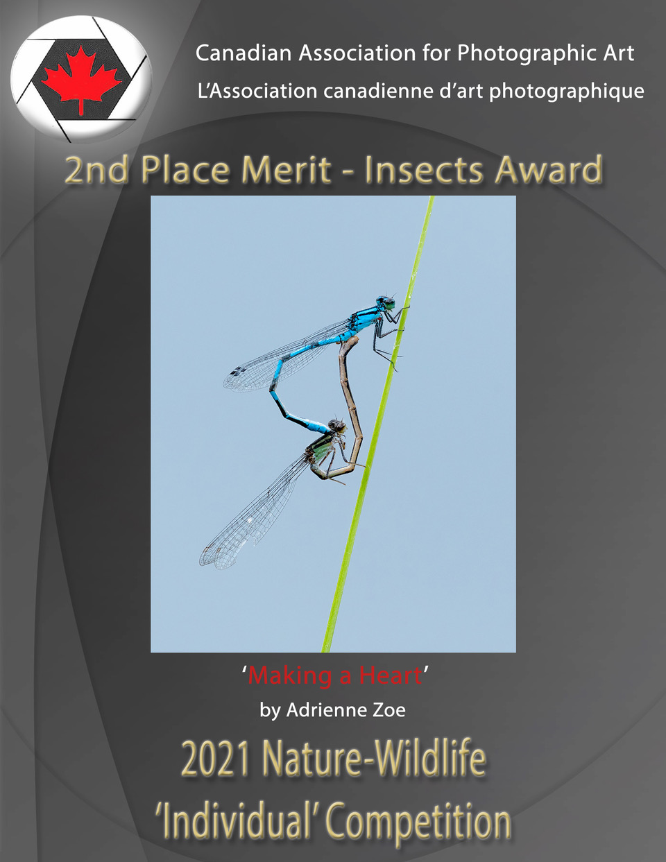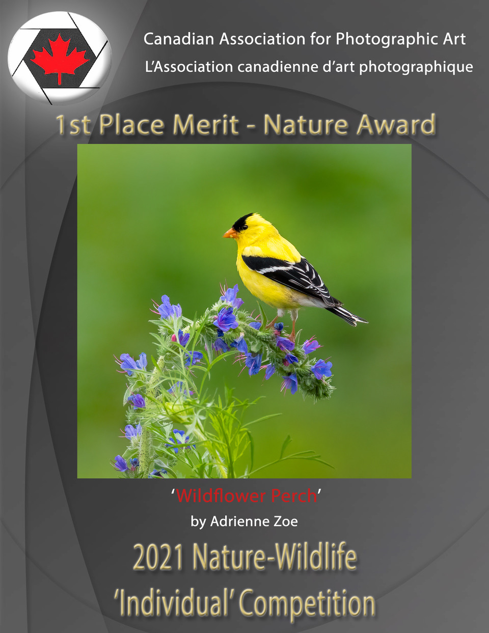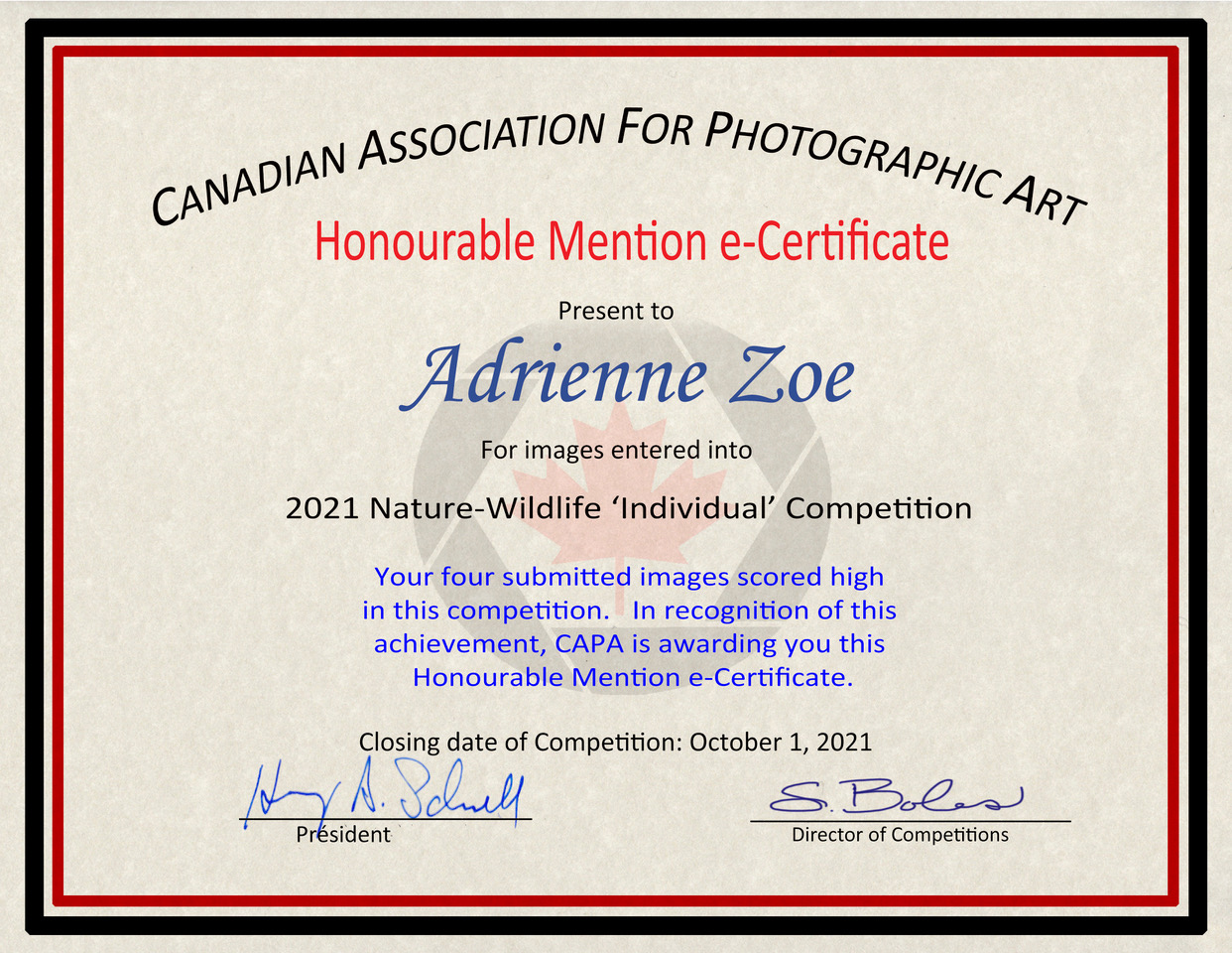 - Merit awards and Honorable Mention, 2021 Canadian Association of Photographic Art Canada: Nature-Wildlife Competition.